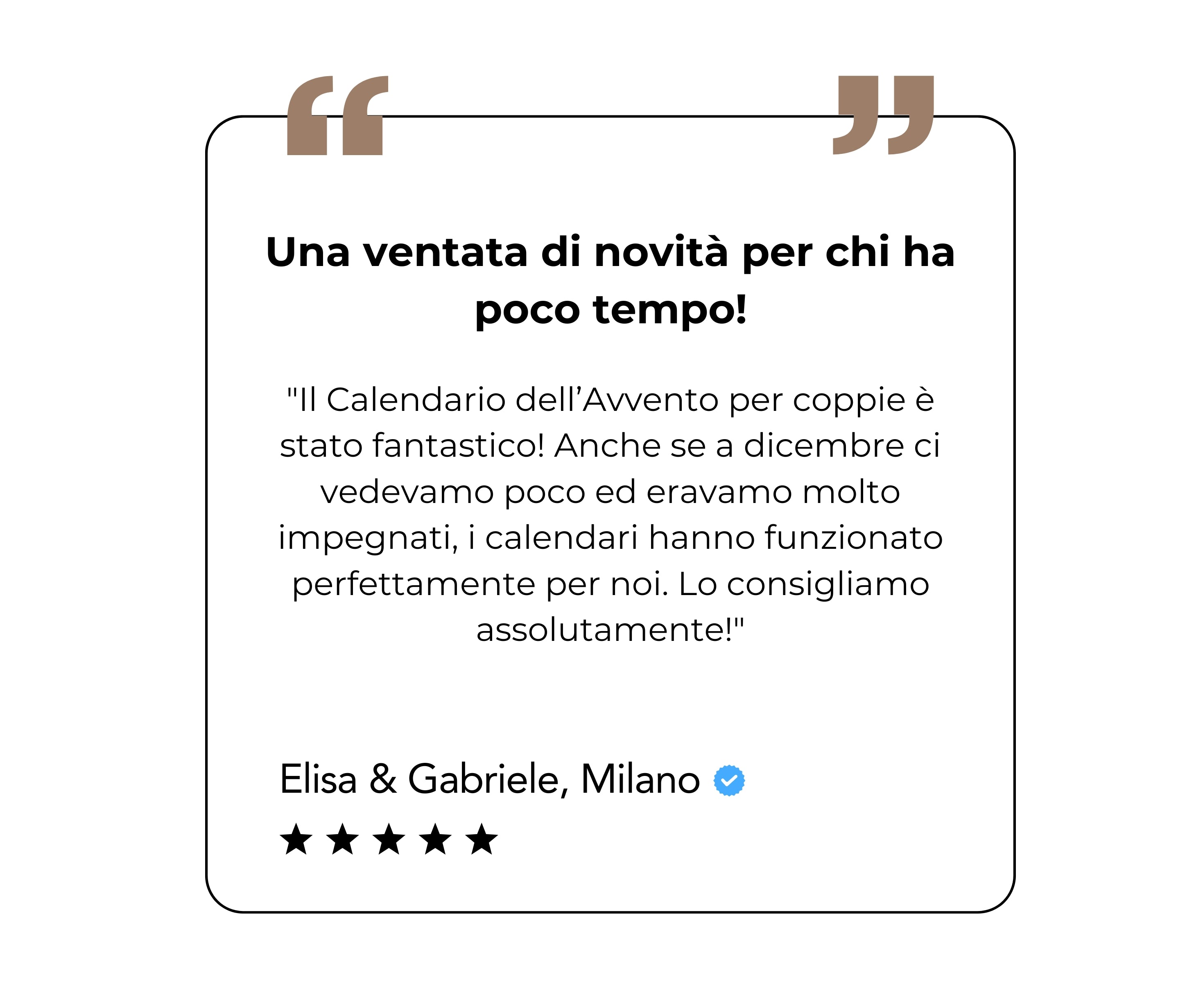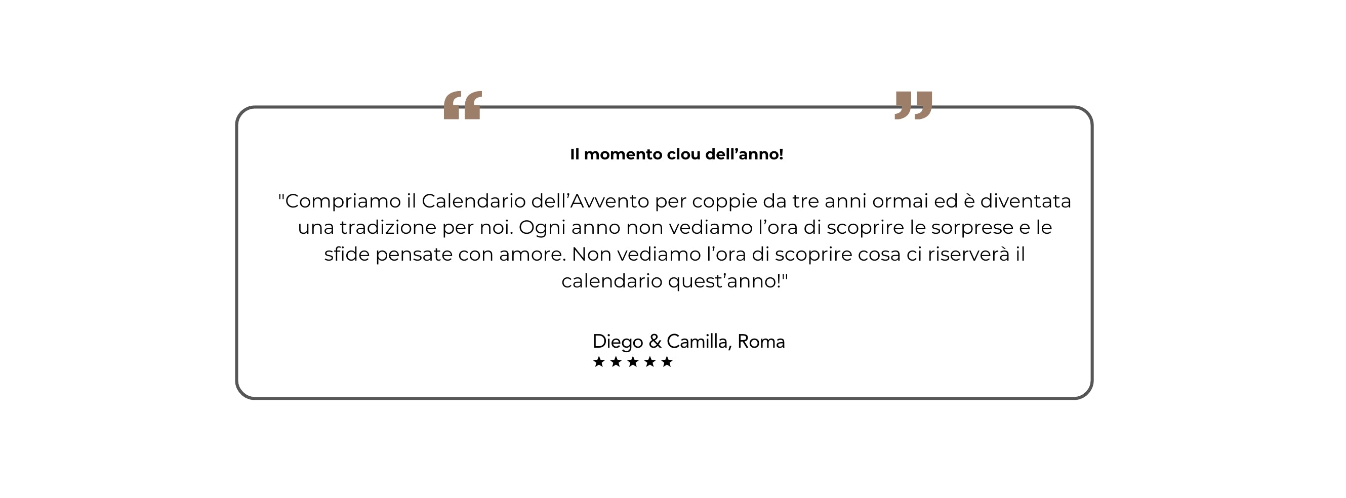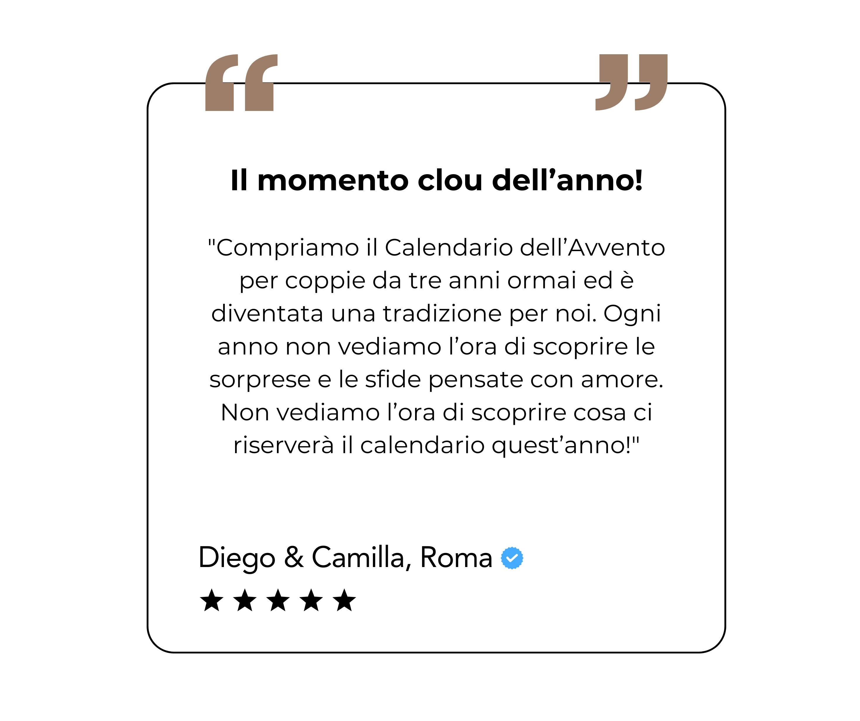 Il calendario dell’Avvento per coppie è progettato con le attività più importanti già organizzate per te. È una piccola attenzione che fa una grande differenza! Il nostro motto: rilassarsi durante il periodo natalizio porta una grande gioia.