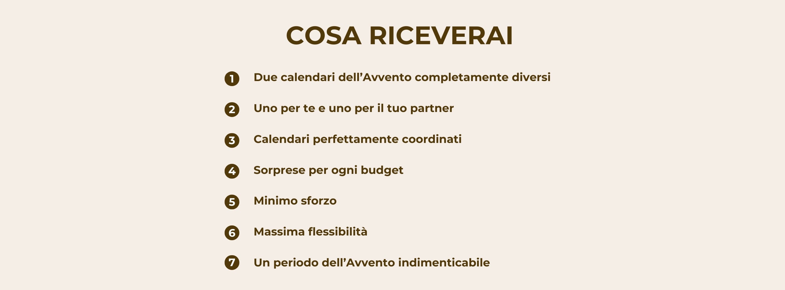 Non riceverai solo uno, ma due diversi calendari dell’Avvento perfettamente coordinati: uno per te e uno per il tuo partner. Se siete una coppia avventurosa, date un’occhiata ai nostri pacchetti speciali.
